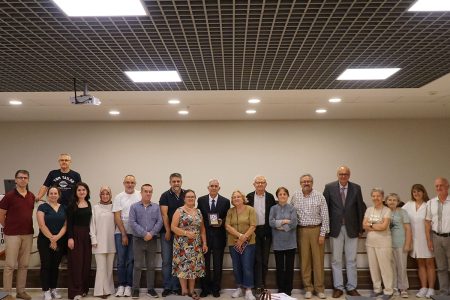 BTO YK Üyesi Dr. Ertuğrul Mehmetoğlu ve Dr. Cem Heper, Prof. Dr. Mustafa Kemal Hacımustafaoğlu’na plaketini takdim etti.