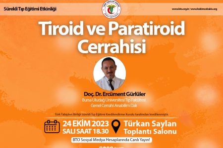 Doç. Dr. Ercüment Gürlüler, ‘Tiroid ve Paratiroid Cerrahisi’ başlıklı bir sunum gerçekleştirecektir.