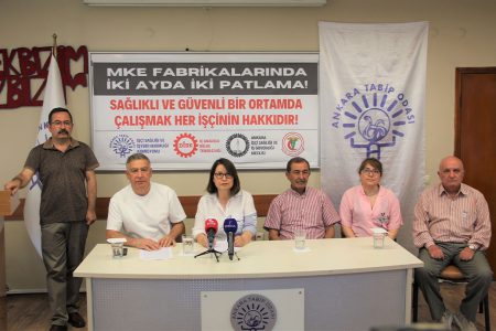 10 Haziran 2023 tarihinde de MKE Ankara Elmadağ’daki dinamit atölyesinde 5 işçinin yaşamını yitirmesine neden olan bir patlamanın gerçekleştiği anımsatılan açıklamada, 18 Temmuz’da meydana gelen patlama neticesinde vücudunun çeşitli bölgelerinde kimyasal yanıklar oluşan 4 işçinin tedavisinin sürdüğü belirtildi.