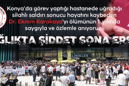 Konya Şehir Hastanesinde çalışan Dr. Ekrem Karakaya’yı tam bir sene önce, 6 Temmuz 2022’de çalıştığı kurumda silahlı saldırı sonucu kaybettik. Kendisini ve sağlıkta şiddet nedeniyle kaybettiğimiz tüm sağlık emekçilerini saygıyla anıyoruz.