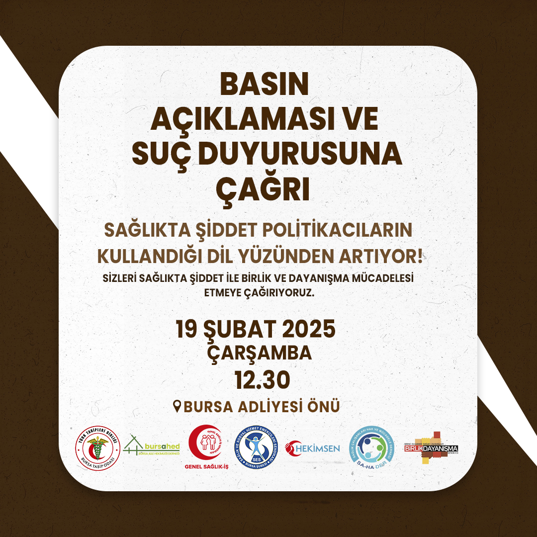 Sizleri sağlıkta şiddet ile birlik ve dayanışma mücadelesi etmeye çağırıyoruz.