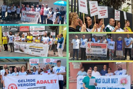 Bugün 21 Ağustos Çarşamba. 21 Şubat’ta başladığımız “Vergide Adalet” eylemlerinin 6’ncı ayında, basın açıklamalarımızın 24’üncüsündeyiz. Sağlık çalışanları ve emeğiyle geçinen yüzbinler, bir yandan hayat pahalılığı altında ezilirken, diğer yandan vergi kesintileri nedeniyle yaşamını idame ettirmekte zorlanıyor.