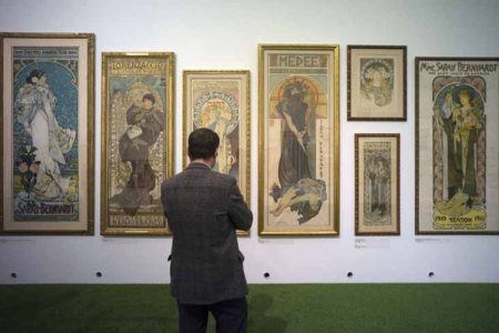 Mucha, Art Nouveau ile anılsa da sanatının “sadece içten gelen ruhsal mesajı ileten stilize edilen formlar” olduğunu ileri sürmüştür. Spiritüalizme duyduğu ilgiyle atölyesinde gözle görülemeyenleri, ele geçirilemeyenleri, gerçeğin ardına gizlenenleri, uykuyu, ölümü konu edinen ve düşselliğe, gerçek dışına, efsanelere, fantastik olana yönelen sembolistlerle bir araya gelip gizemli konuları öğrenmeye çalışır. Klasik resimden ziyade afiş ve posterleriyle ünlenen ve başarı kazanan sanatçı mücevher, takvimler, mozaik panoları, yağ, diş macunu ve sabun etiketleri, duvar kâğıtları, tiyatro setleri gibi değişik alanlarda da tasarımlar yapmıştır.