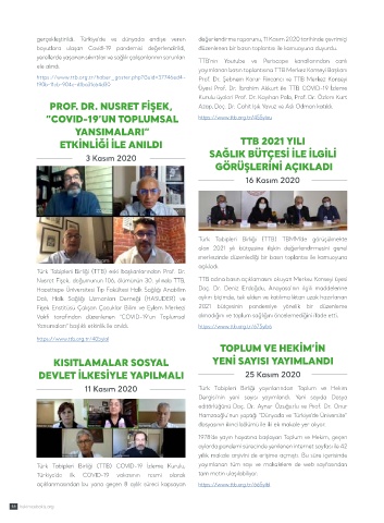 11 Kasım 2020 Türk Tabipleri Birliği yayınlarından Toplum ve Hekim