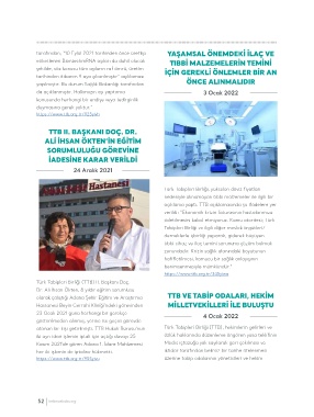 gösterilmeden alınmış, yerine ise geçici görevde geri çekilmesi ve iktidar tarafından belirsiz bir Türk Tabipleri Birliği (TTB) ve tabip odaları,