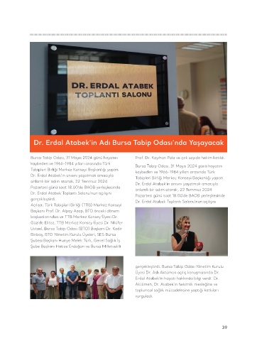 Dr. Erdal Atabek’in anısını yaşatmak amacıyla Tabipleri Birliği Merkez Konseyi Başkanlığı yapan