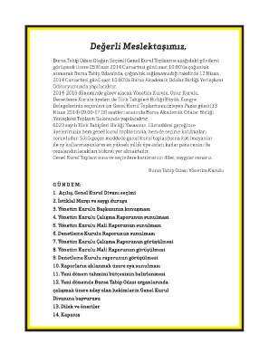 Genel Kurul Toplantısına ve seçimlere katılmanızı diler, saygılar sunarız.