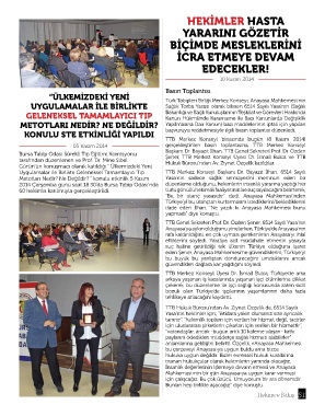2014 Çarşamba günü saat 18.30’da Bursa Tabip Odası’nda düzenleme olduğunu, hekimlerin insanlık yararına yaptığı her