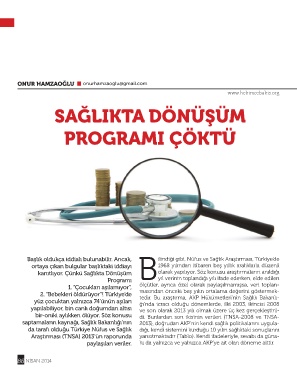 saptamaların kaynağı, Sağlık Bakanlığı’nın 2013), doğrudan akP’nin kendi sağlık politikalarını uygula-