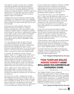denilerek özel sağlık kuruluşlarına dair bir belirleme Türk Tabipleri Birliği’nin adını kullanarak