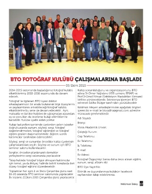 2014-2015 sezonunda başladığımız fotoğraf kulübü Kulüp sorumluluğunu ve organizasyonunu BTO