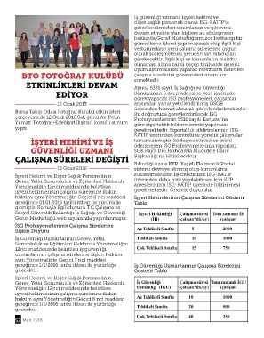 gereğince 1/1/2016 tarihi itibarı ile yürürlüğe İş Güvenliği Uzmanlarının Çalışma Sürelerini