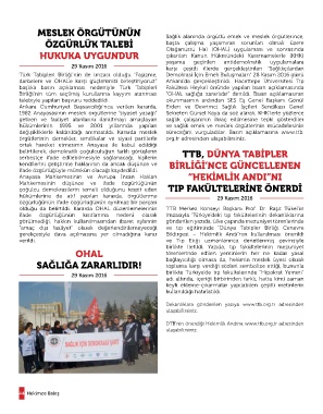 olduğu da belirtildi. Kararda OHAL düzenlemelerinin TTB Merkez Konseyi Başkanı Prof. Dr. Raşit Tükel’in
