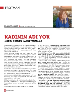 kaybetmiştir. Alfred NOBEL öldüğünde gazetelerde “ölüm yine en bilinen “Her Kadın Gibi” Türkçeye çevrilmiş. Yazdığı