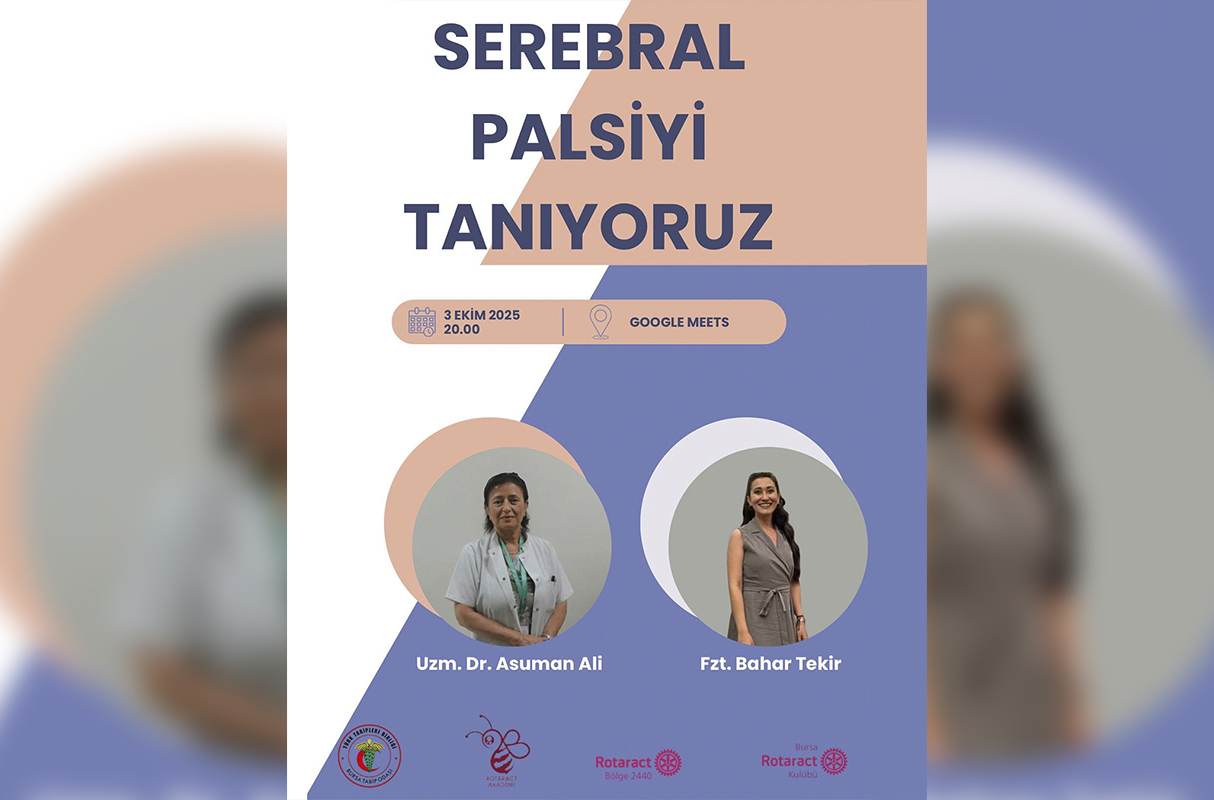 Bursa Tabip Odası, Rotaract Akademi ve Bursa Rotaract Kulübü iş birliğiyle düzenlenen “Serebral Palsiyi Tanıyoruz” başlıklı eğitim 3 Ekim 2025 tarihinde çevrim içi gerçekleştirildi.