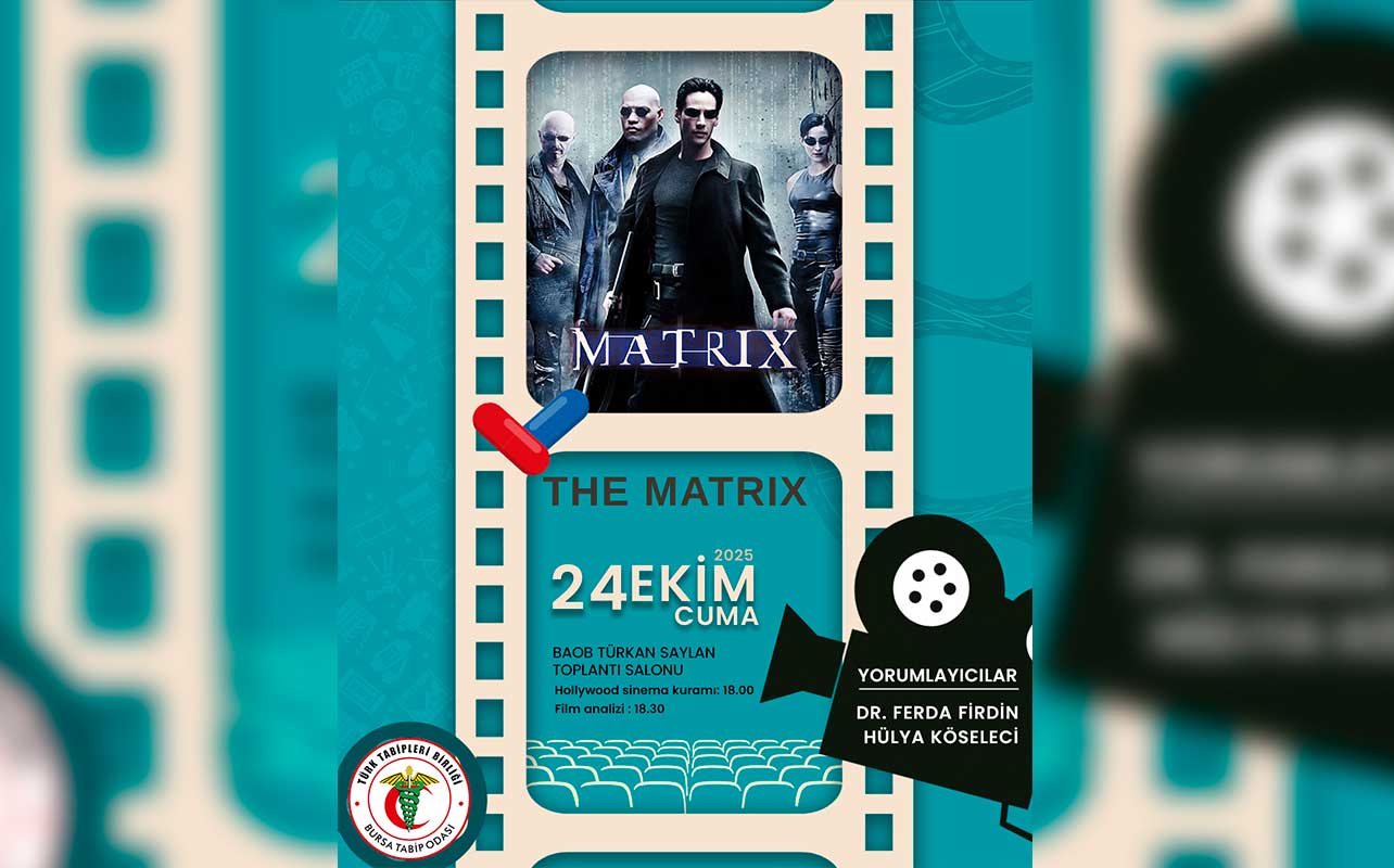 Bursa Tabip Odası Kültür Sanat Komisyonu’nun düzenlediği “Film Analizi” etkinliğinde, sinema tarihinin kült yapıtlarından The Matrix filmi ele alınacak.