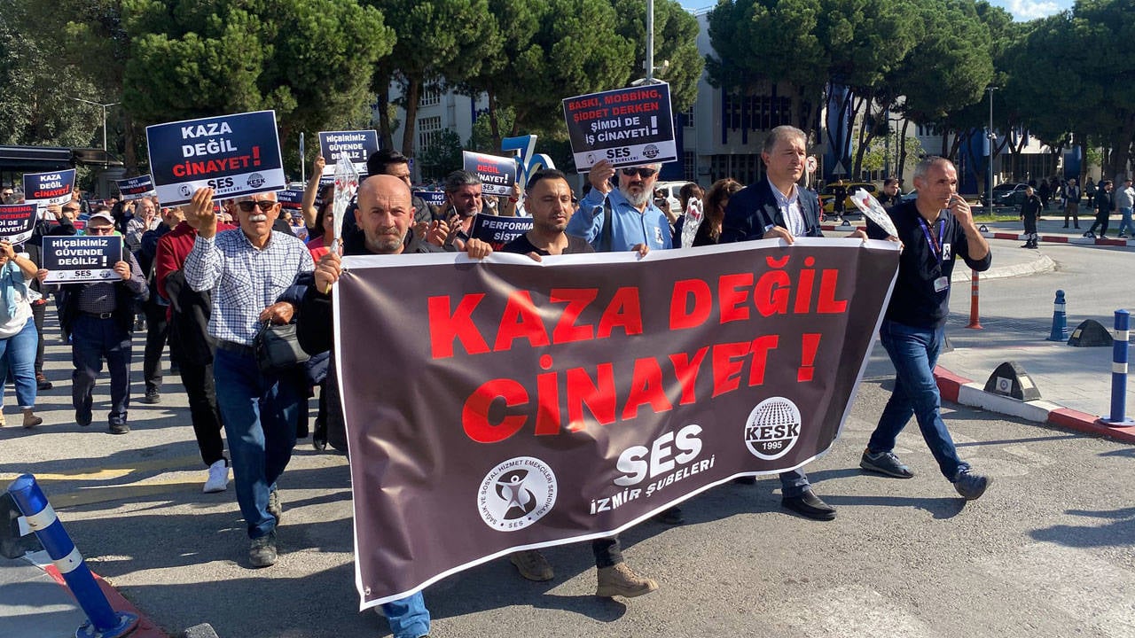 SES İzmir Şubeleri, Ege Üniversitesi Hastanesi’nde güvenlik önlemlerinin alınmaması nedeniyle yaşamını yitiren iş yeri temsilcisi Ali Can için “Kaza değil, cinayet” diyerek yürüyüş düzenledi. Açıklamada, “Can’ın ölümü karşısında susmayacağız” denildi.