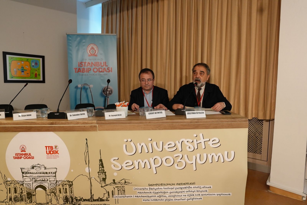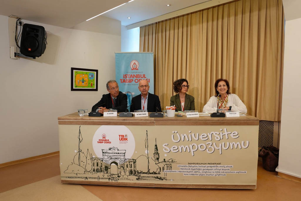 Türk Tabipleri Birliği Uzmanlık Dernekleri Eşgüdüm Kurulu (TTB-UDEK) ve İstanbul Tabip Odası’nın (İTO) birlikte düzenledikleri Üniversite Sempozyumu 18 Mayıs 2024 günü İTO’nun Cağaloğlu’ndaki binasında yapıldı. Dr. Ayşegül Bilen ve Dr. Osman Elbek’in başkanlığını yaptığı sempozyum bünyesinde dört oturum ve bir forum bölümü düzenlendi.
